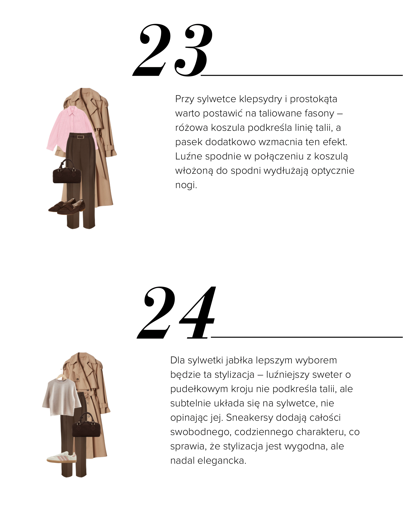 - otrzymasz też wskazówki z poradami dotyczącymi Twojej sylwetki, tak, abyś mogła odtworzyć stylizacje bez problemu